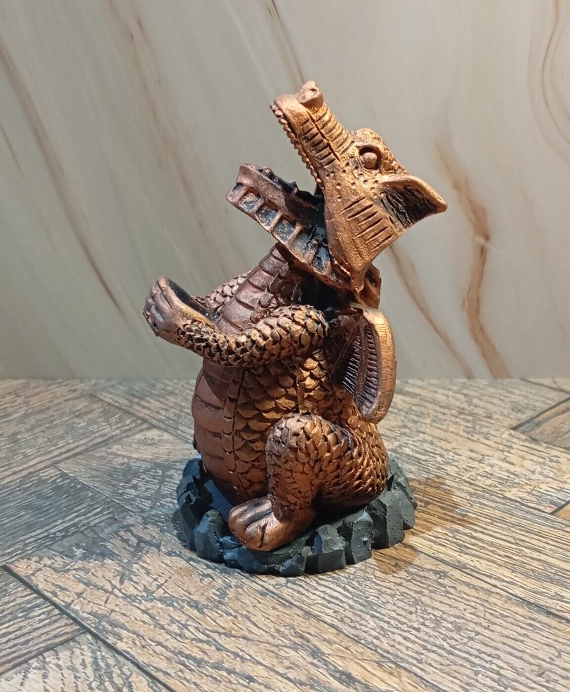 Lorsque le cône brûle, la fumée s’échappe de la gueule du dragon.10