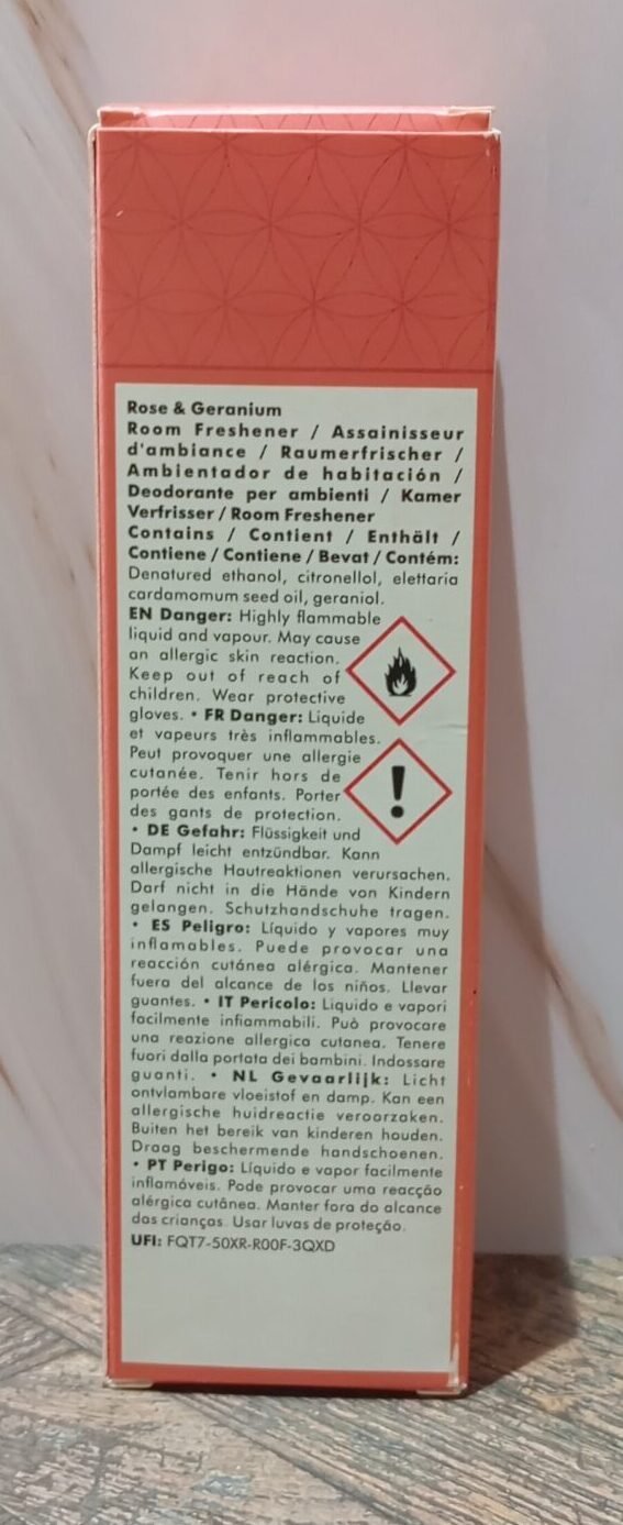 Contenance : 100 ml. Préparé avec des huiles essentielles et de l’alcool de canne à sucre biologique. Contient : Denatured ethanol, citronellol, elettaria cardamomum seed oil, geraniol. UFI : FQT7-50XR-R00F-3QXD